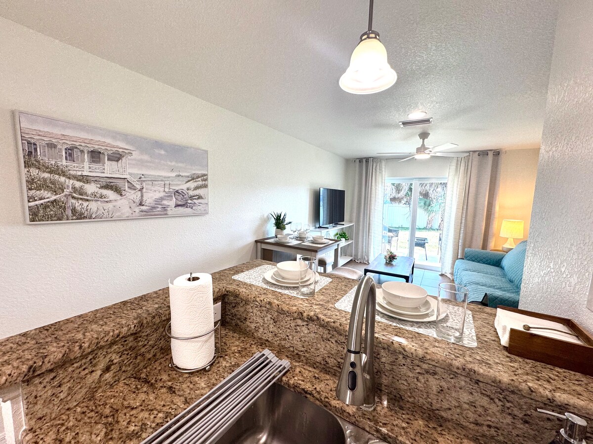 Sandy Flamingo Vacations ofrece esta espaciosa y totalmente renovada casa en South Venice, ubicada justo al sur de Sarasota. 2 dormitorios, 2 baños y una habitación adicional/sala de juegos. Es ideal tanto para viajes de trabajo como de ocio, ofreciendo un retiro sereno para disfrutar de actividades como playas soleadas, pesca, navegación y exploración. El patio trasero está completamente cercado, con una parrilla para barbacoa y una mesa de patio para cenar al aire libre. La cocina está totalmente equipada, por lo que es adecuada para estancias largas y para cocinar en familia.