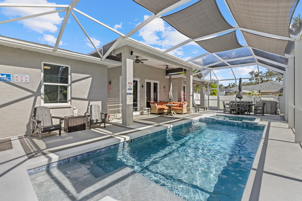 ¡Imagina volver a casa a tu propio oasis privado con piscina de agua salada privada y jacuzzi/spa después de un largo día explorando el suroeste de Florida y todo lo que ofrece! ¡Bebe tu café por la mañana o cócteles por la noche en el bar tiki y comparte la cena con amigos en nuestro comedor al aire libre! ¡No hay mejor lugar para descansar y relajarse que nuestro pequeño paraíso en Venice! ¡A MINUTOS de las hermosas PLAYAS del Golfo! Te ofrecemos todo lo que necesitas para pasar unas maravillosas vacaciones sin preocupaciones en FLORIDA.