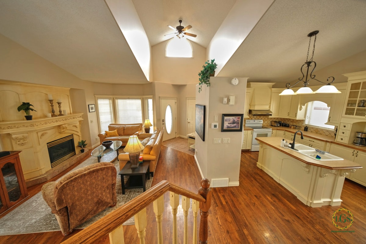 Múltiples dormitorios con camas cómodas, ropa de cama fresca y lujosa. Capacidad para 10 huéspedes. Cocina totalmente surtida con electrodomésticos modernos, utensilios de cocina y configuración de café Wifi rápido y espacio para trabajar/transmitir 🧖 Sauna privada Patio trasero🐶 completamente cercado 🍔 Terraza grande con asador y asientos al aire libre. 🚗 Aparcamiento gratuito 🔑 Registro de entrada sin restricción de horario con cerradura inteligente sin complicaciones Cerca: tiendas de víveres, restaurantes y cafés A pocos pasos del parque, el teatro VIP más grande, el parque acuático YMCA, las pistas de patinaje y el gimnasio. Rutas principales para acceder fácilmente a Calgary