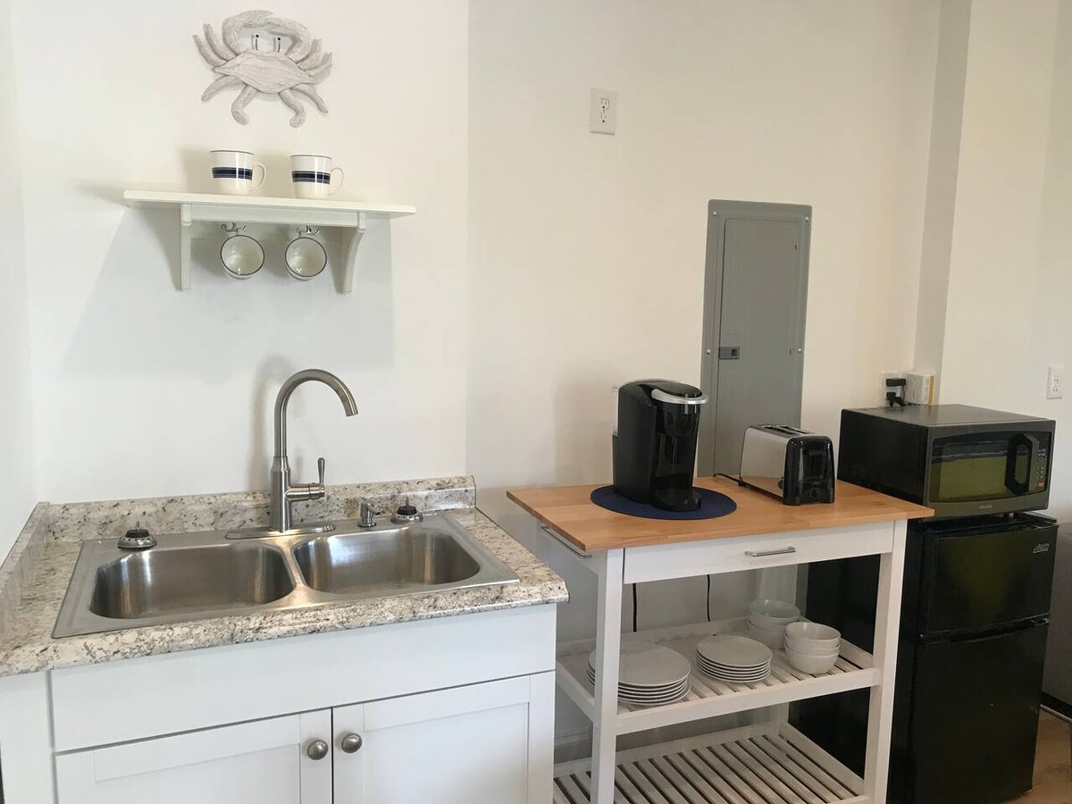 Estudio moderno y acogedor en un barrio tranquilo que admite mascotas. A cinco minutos a pie de varios restaurantes y a tres manzanas (10 minutos a pie) del acceso directo a la playa. Disfruta de los sonidos de los pájaros y la brisa del mar mientras asas a la parrilla o te relajas en el corredor cubierto. ¡Trae tu leña y haz una fogata relajante en nuestro hermoso pozo de fuego! ¡Este elegante lugar tiene una pequeña cocina, baño completo, armario, una cama increíblemente cómoda y un sofá! ¡El lugar de escapada perfecto para una pareja o unos amigos!
