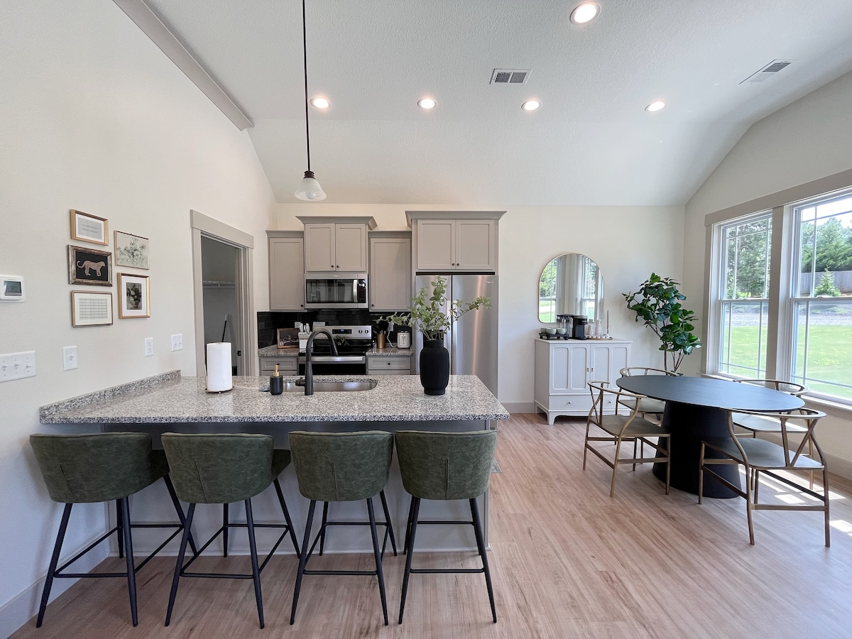 Bienvenido a Blessed Haven, un refugio sereno para todos. Nuestra casa de huéspedes actualizada, ubicada detrás de la residencia principal, es perfecta para viajeros solos, huéspedes de negocios o familias pequeñas. Con una cama tamaño king, es ideal tanto para visitas de corta duración como para residencias de larga duración. ¡Disfruta de tranquilidad y comodidad con nosotros!