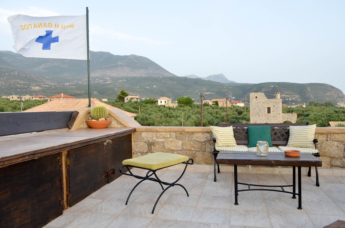 Es una torre de piedra situada a los pies de Taygetos con una vista única del golfo de Messenia. La casa de 200 m² parece armonizar con el paisaje natural de la zona designada como Natura. La torre consta de 3 dormitorios con armarios, 1 baño principal, 2 aseos, cocina con comedor y sala de estar con chimenea. Como fuente de calor utiliza calefacción central de gasóleo, así como aire acondicionado.
