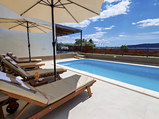 Villa 3D ofrece un apartamento para 4 a 5 personas cerca del mar con uso de la piscina y desayuno incluido. Ofrecemos paz real y vacaciones inolvidables, rodeadas de mar, olivos y montañas. La distancia desde el departamento hasta la playa es de 150 metros. Son unas vacaciones reales en silencio y en un entorno natural que todo el mundo necesita. Amplia terraza para relajarse con una taza de café fresco o una copa de vino local. Ven, relájate, disfruta con nosotros.