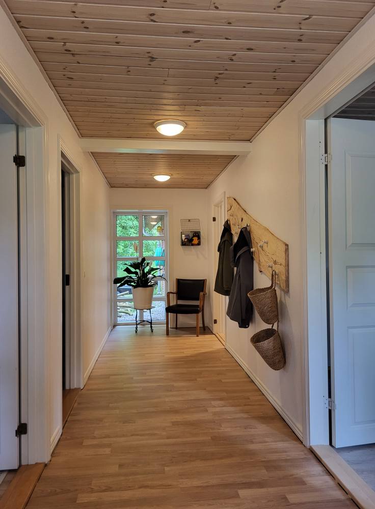 Pequeña casa acogedora y rústica en conexión directa con el invernadero. La casa es un anexo a nuestra casa con techo de paja que se encuentra en el borde del bosque orientado al sur. Rodeada de un gran jardín. En la casa hay una cama doble, un sofá y una mesa de centro y una escalera a un pequeño altillo. La casa se calienta con una estufa de leña, leña incluida. Instalaciones de cocina sencillas, pero es posible cocinar una comida caliente. Aseo y baño en la casa principal, directamente en la entrada de la casa de invitados. Inodoro y baño separados, compartidos con la pareja anfitriona. La casa está muy bien situada, cerca del fiordo, el mar, el Parque Nacional Thy