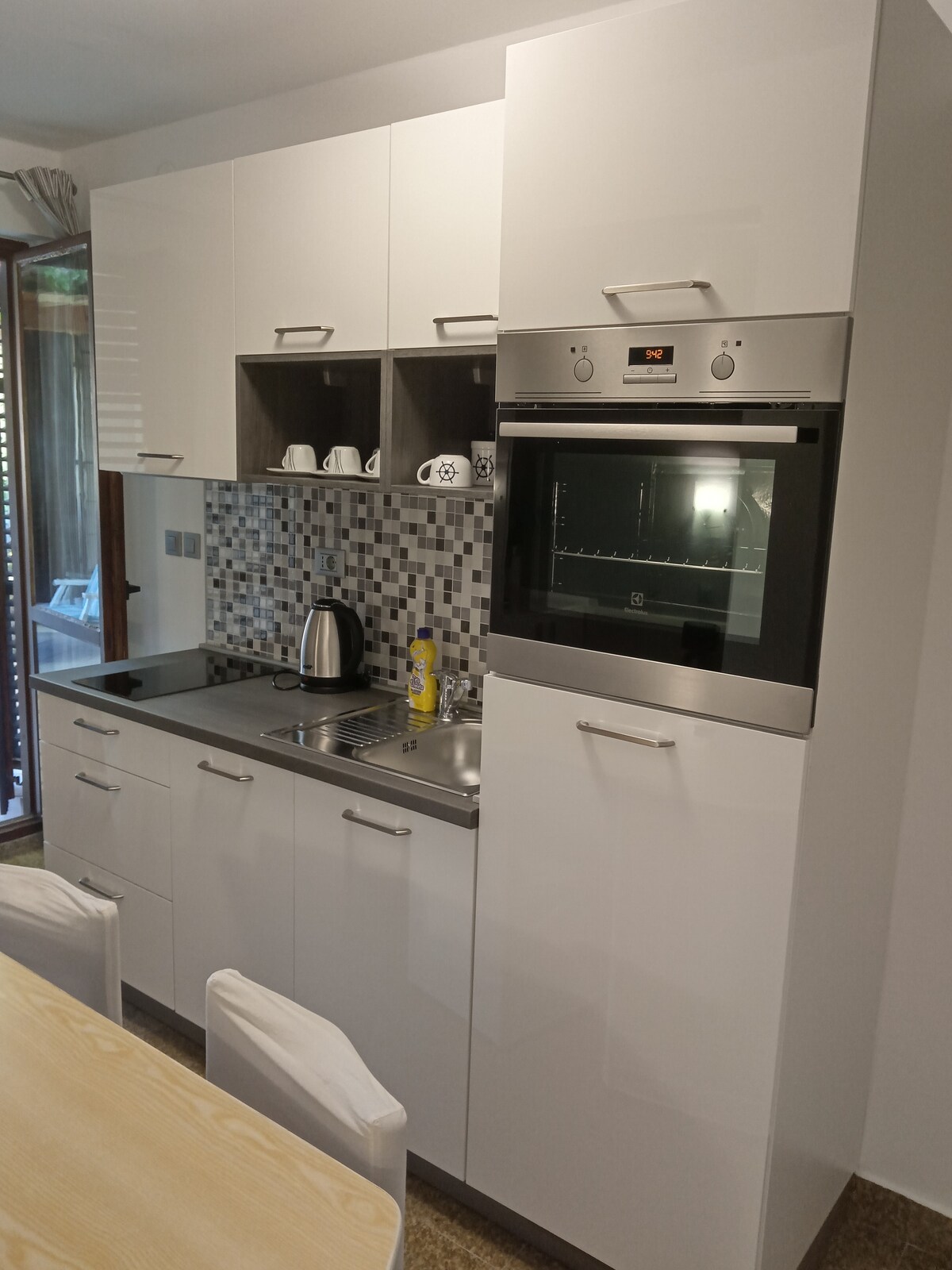 Ubicado en la encantadora villa, este apartamento elegantemente amueblado cuenta con tres dormitorios, dos baños, una enorme terraza con jacuzzi exterior, una cocina totalmente equipada (lavadora, microondas, tostadora, cafetera, hervidor de agua), comedor y zona de estar. La propiedad cuenta con unas magníficas vistas al mar Adriático y a las islas. Aire acondicionado en todo el apartamento. Wifi gratis y artículos de tocador.