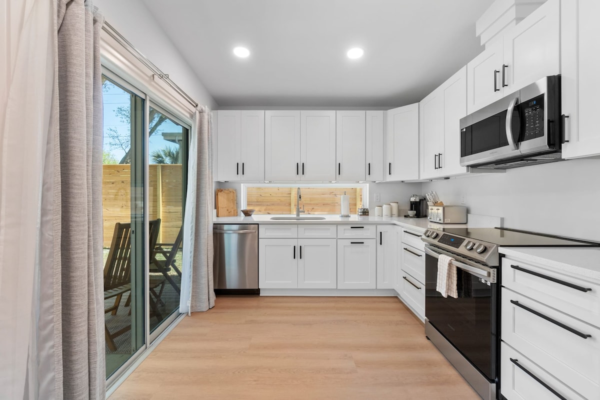 Casa de campo increíblemente renovada que combina comodidades modernas con encanto vintage... * 2 suites principales con camas tamaño queen. * Barrio tranquilo a poca distancia a pie para explorar la ciudad más antigua de la nación. * Bañeras con patas por dentro y por fuera (¡junto con las duchas, por supuesto!) * Gran porche con mosquitero y sofá cama colgante. * Estacionamiento pavimentado fuera de la calle. * Patio trasero completamente cercado, parrilla Weber, fogata de gas. * Wifi rápido y TV inteligente * A 2 cuadras de Fish Camp, Ice Plant, LaNuvelle, parada de tranvía. * A 10 minutos a pie del centro de la ciudad