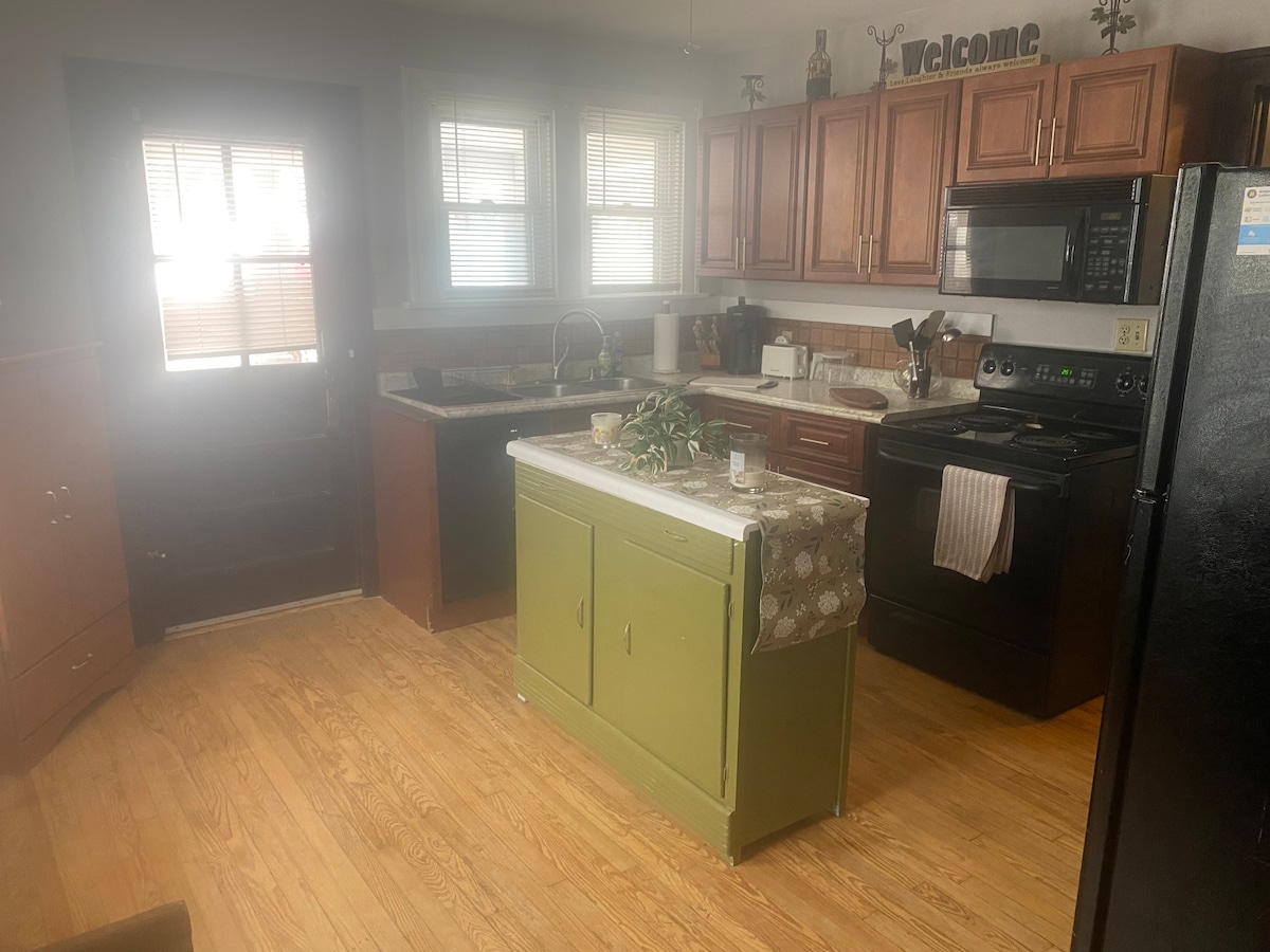 Estudio privado de nueva construcción en el piso superior, situado en un patio trasero de una casa victoriana histórica construida en 1898. Realice el autorregistro de entrada en su propia entrada gracias a la caja de seguridad con llave. Cama Queen Murphy Armario pequeño Sala de estar con sofá y mesas Cocina totalmente equipada con refrigerador, estufa eléctrica, microondas y comedor Ducha a ras de suelo Balcón con conjunto de bistró con vistas al patio. Base de carga USB Televisor de 40 pulgadas que gira 180 grados para verlo en la cama Roku con aplicaciones premium Wifi