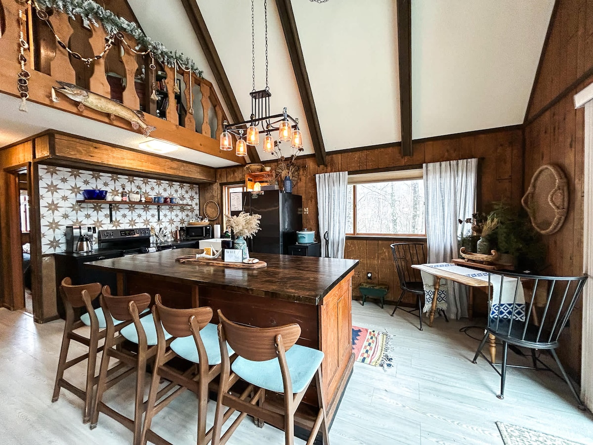 Acogedora casa con iluminación cálida y colores de pintura y decoración creativa de Northwoods con un toque moderno. Los servicios incluyen internet de alta velocidad, electrodomésticos de acero inoxidable, cafetera, lavadora y secadora de carga frontal, servicios de streaming/Apple TV, 3 televisores de pantalla plana, 2 chimeneas, aire acondicionado central y un horno de alta eficiencia. La casa está situada en 4 acres boscosos (no frente al lago) junto a un camino de grava bien mantenido. Muy privado. No hay vecinos a la vista. La vida silvestre es abundante. Se admiten perros con aprobación y tarifa.
