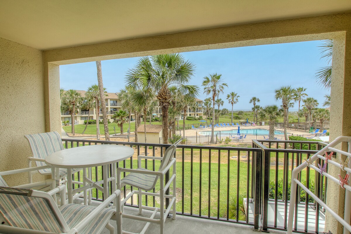 Si te gusta relajarte bajo el sol de Florida y el agua, esto es para ti. Disfruta de nuestro apartamento de 2 dormitorios/2 baños, de 1200 pies cuadrados con vistas a la playa desde los balcones del segundo piso (abajo) y del tercer piso (arriba). Dos dormitorios de arriba comparten un baño; el segundo baño completo está abajo. Hay 2 piscinas (una climatizada) y la playa está a 4 minutos a pie. Estamos situados en el centro de A1A Beach Boulevard, en la isla de Anastasia, a menos de 1 milla de muchos restaurantes y a 10 minutos en coche del casco antiguo de St. Augustine.