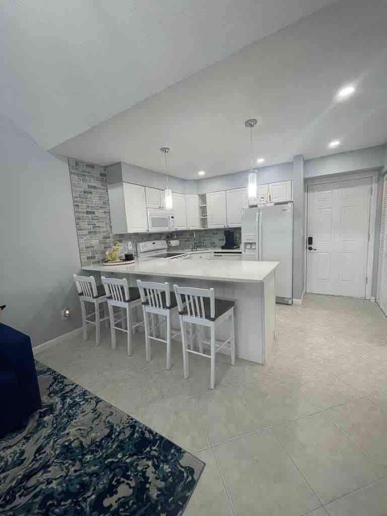 Maravilloso apartamento remodelado en Florida, en una zona tranquila y relajante. Ideal para parejas, aventuras en solitario y viajeros de negocios. Tiene capacidad para 4 personas: 1 dormitorio (con 1 cama tamaño queen y 1 cama tamaño king), 1 baño completo con ducha, tocador adicional y bañera de hidromasaje. Situado a poca distancia a pie del PGA Golf Club, que cuenta con tres campos de campeonato, y a 5 minutos del campo de entrenamiento de primavera de los NY Mets. Cerca de la I-95, tiendas, restaurantes y playas a 30 minutos.