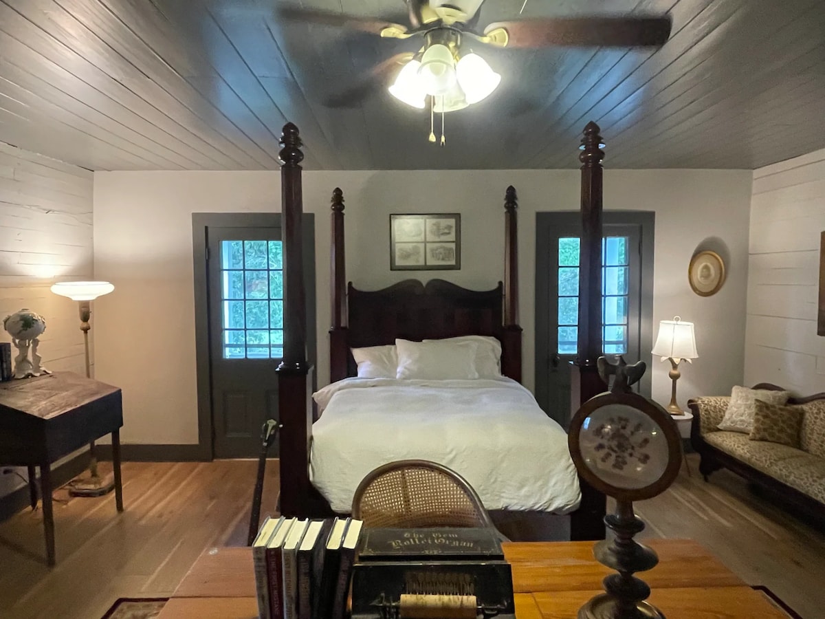 Mejora tu experiencia en el pantanal del sur de Luisiana. Esta moderna y simplista casa de huéspedes ofrece acceso al río Teche, proyectado en un área ubicada en una hermosa propiedad antigua con cipreses calvos y robles vivos en un gran entorno natural. La casa de huéspedes ofrece una cama tamaño king, TV de 70 pulgadas, ducha que te hará sentir como si estuvieras en el spa. Otras comodidades incluyen un patio cubierto adjunto, Wifi, cocina completa y tu propia entrada personal.