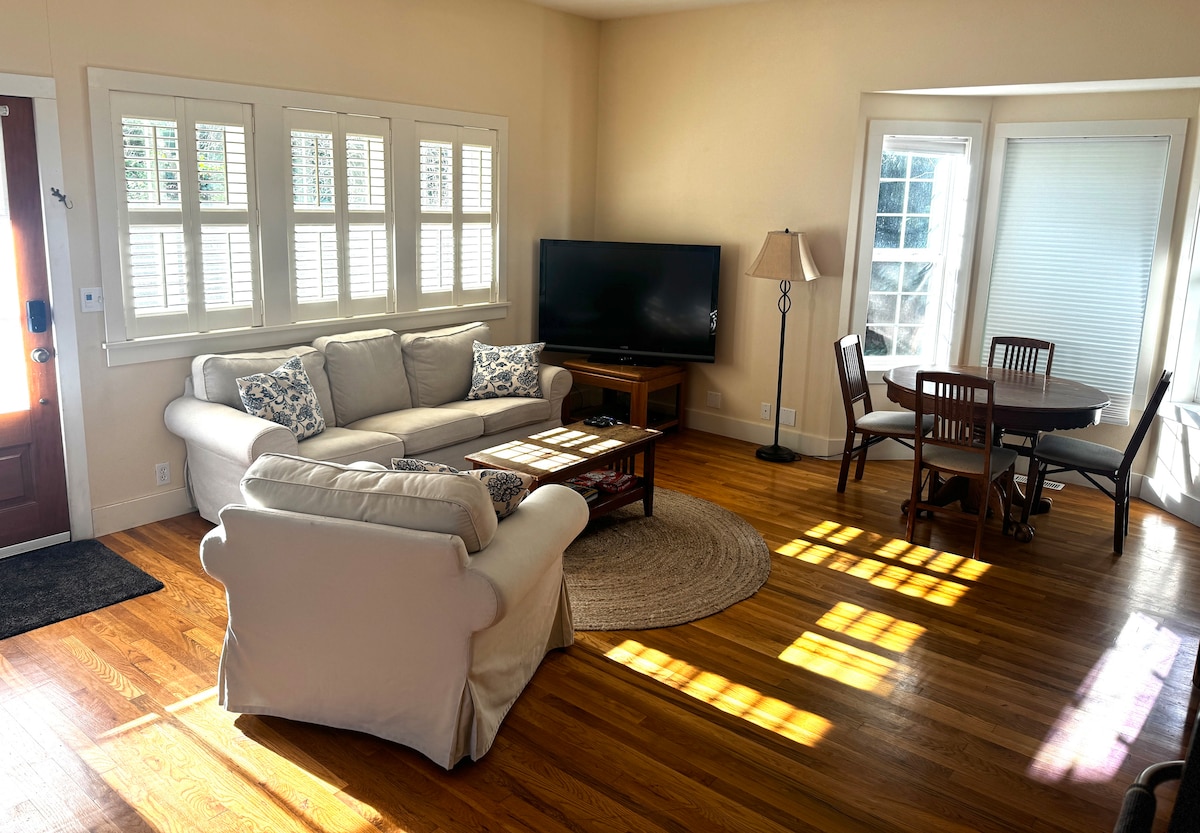 Con una ubicación céntrica entre Portland y Newberg Wine Country, nuestra pintoresca casa de 1949 está a poca distancia a pie de tiendas y comida. El barrio es limpio, amable y seguro. El transporte público está cerca. Es una casa antigua pero recién restaurada. Fácil acceso a la autopista. Disfruta de una copa de vino en el patio cubierto con un fuego crepitante en la chimenea al aire libre. El patio trasero está totalmente vallado para la seguridad de mascotas y niños.