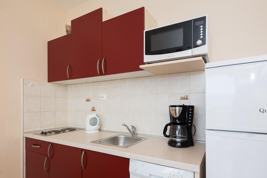El apartamento "Aqua 2" está en un lugar tranquilo, está decorado de tal manera que exuda calidez y un ambiente agradable. Está pensado para 2 personas, pero ofrece la posibilidad de que la pareja con el bebé o el niño se aloje en él. Tiene una amplia terraza con una vista increíble del mar, donde a nuestros huéspedes les gusta disfrutar de su primer café y desayuno por la mañana. La playa de guijarros y el departamento están directamente conectados por escaleras, lo que proporciona un ambiente especial.