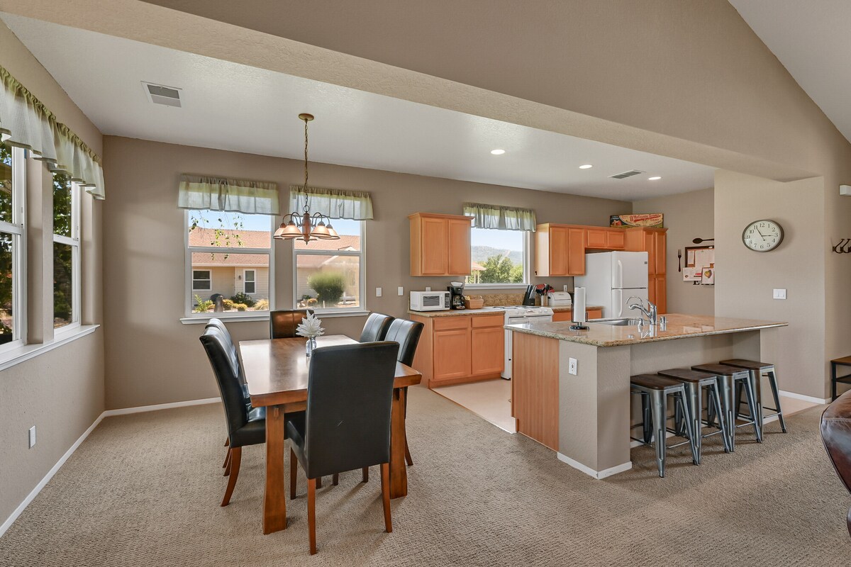 🏡 ¡La escapada en grupo definitiva! Amplia casa de 2 pisos con capacidad para 13 personas, jacuzzi privado, mesa de billar, gimnasio, 2 patios al aire libre con televisores inteligentes y chimenea en la suite principal. ¡A solo 1,5 horas de Yosemite! ☕ Cocina completa • Wifi rápido • Estacionamiento gratuito • Acceso sin restricción de horario Ideal para: familias numerosas, celebraciones, grupos de Yosemite, retiros corporativos y familias que asisten a torneos deportivos. ¡Descuentos semanales y mensuales!