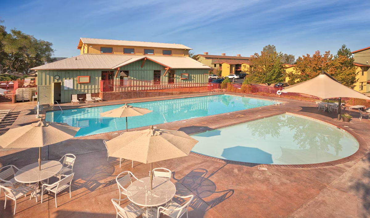 Angels Camp Resort, enclavado en el corazón del histórico territorio de la fiebre del oro de California. Descubre un verdadero tesoro mientras disfrutas de la belleza natural y la rica historia de la zona. Nuestra espaciosa suite de 2 dormitorios ofrece una escapada serena con fácil acceso a las fantásticas comodidades del centro vacacional.