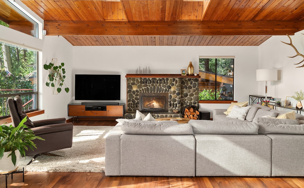 Disfruta de una escapada a Madrona Beach en esta cabaña vintage actualizada. A poca distancia a pie de la playa comunitaria te ofrece oportunidades para peinar en la playa, pescar cangrejos de verano e invierno, piragüismo o kayak, ¡y a veces incluso avistamientos de ballenas! O simplemente sumérgete en la bañera de hidromasaje. Esta cabaña se encuentra en la parte noroeste de la isla de Camano, en la histórica zona de "Camp Lagoon", a solo 1 hora y media de Seattle, y está cerca de parques estatales, senderismo, tirolesa y arte. Es el lugar perfecto para relajarse, explorar y disfrutar de la vida.