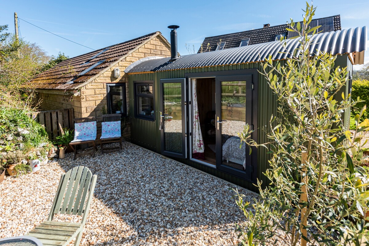 Cabaña de pastores en las colinas de Blackdown, en la frontera rural de Somerset/Devon, con vistas a la campiña en un lugar aislado, bañera de hidromasaje de leña con vistas a las tierras de cultivo y los animales. Estufa de leña en la cabaña con chimenea exterior. Aparcamiento privado, bicicletas disponibles para pedir prestadas para explorar los alrededores de AONB. A 1 milla del pueblo con pub y tienda. La cabaña incluye una gran ducha, inodoro y toallero eléctrico. La zona de cocina tiene nevera, fregadero Belfast y placa de inducción. Ideal para observar las estrellas y relajarse.