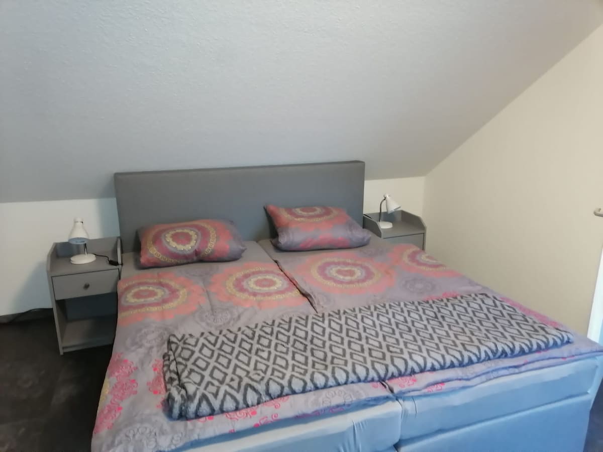 Disfruta de tu tiempo libre en nuestro elegante alojamiento justo al lado del bosque natural Franzhorner Forst. El apartamento es familiar y está totalmente equipado con todo lo necesario para un buen descanso. Si sales por la puerta de tu casa, prácticamente estás en el sendero norte/en el bosque. En la gran parcela ajardinada compartida hay una terraza privada, un brasero y la posibilidad de hacer barbacoas y mucho espacio para relajarse.