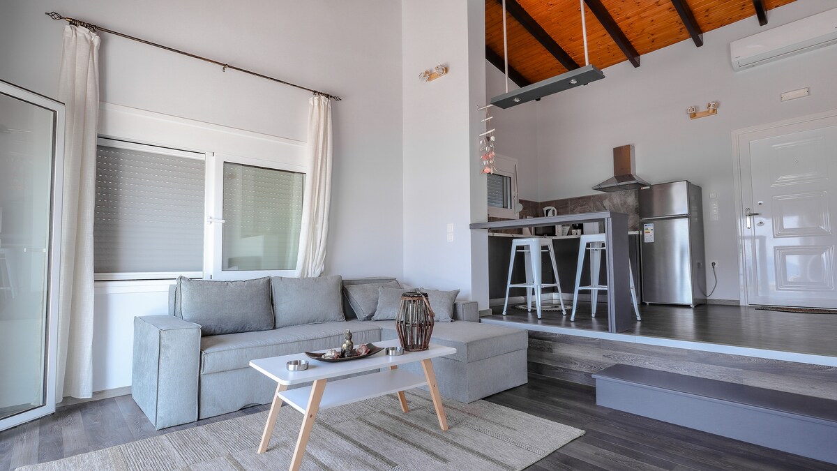 La casa se encuentra a solo 10 metros del mar, en la playa de Stegna. Cuenta con un dormitorio con cama de matrimonio, sala de estar con sofá cama, cocina totalmente equipada, 2 baños e incluso una chimenea. También hay un amplio patio con 2 tumbonas para que puedas descansar y tomar el sol. Está a 100 metros de la parada de autobús y de las tiendas y restaurantes locales. También hay una plaza de aparcamiento justo fuera de la casa. La ciudad de Rodas está a 32 km, Lindos a 19 km y Faliraki a 15 km.