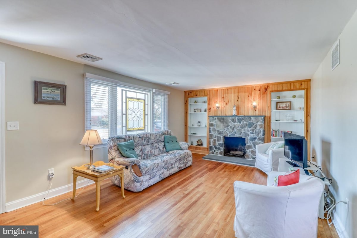 En la ciudad, increíble ubicación en Walnut Street, Rock Hall Rancho limpio, tranquilo y hermoso, ¡gran vallado en el patio! 1 dormitorio (queen) 1 dormitorio (queen) Solárium (doble) con sofá cama. A solo 1 manzana de la bahía de Chesapeake. Perfecto para tu escapada de fin de semana o estancia más larga. Casa de campo de 2 dormitorios y 1 baño reformada con buen gusto. Ubicada a SOLO una manzana de puertos deportivos, restaurantes, Public Landing y Rock Hall Harbor. A tres manzanas de Ferry Park Beach. Un hermoso y seguro paseo a pie o en bicicleta hasta Main Street (1,5 millas)