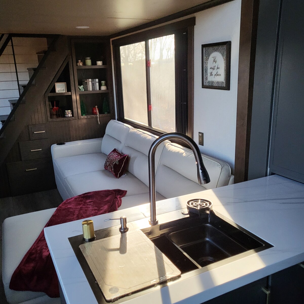 Disfruta de los sonidos de la naturaleza cuando te hospedes en este lugar único. Ubicado en 14 acres de hermosas tierras bordeadas de árboles que conducen a un hermoso entorno frente al lago. Este lujoso RV te permite disfrutar de la comodidad del hogar con todas las comodidades actualizadas, incluidos electrodomésticos modernos, chimenea, arreglos para dormir para hasta 7 personas, fogata al aire libre para esas cálidas y acogedoras reuniones familiares y mucho más.