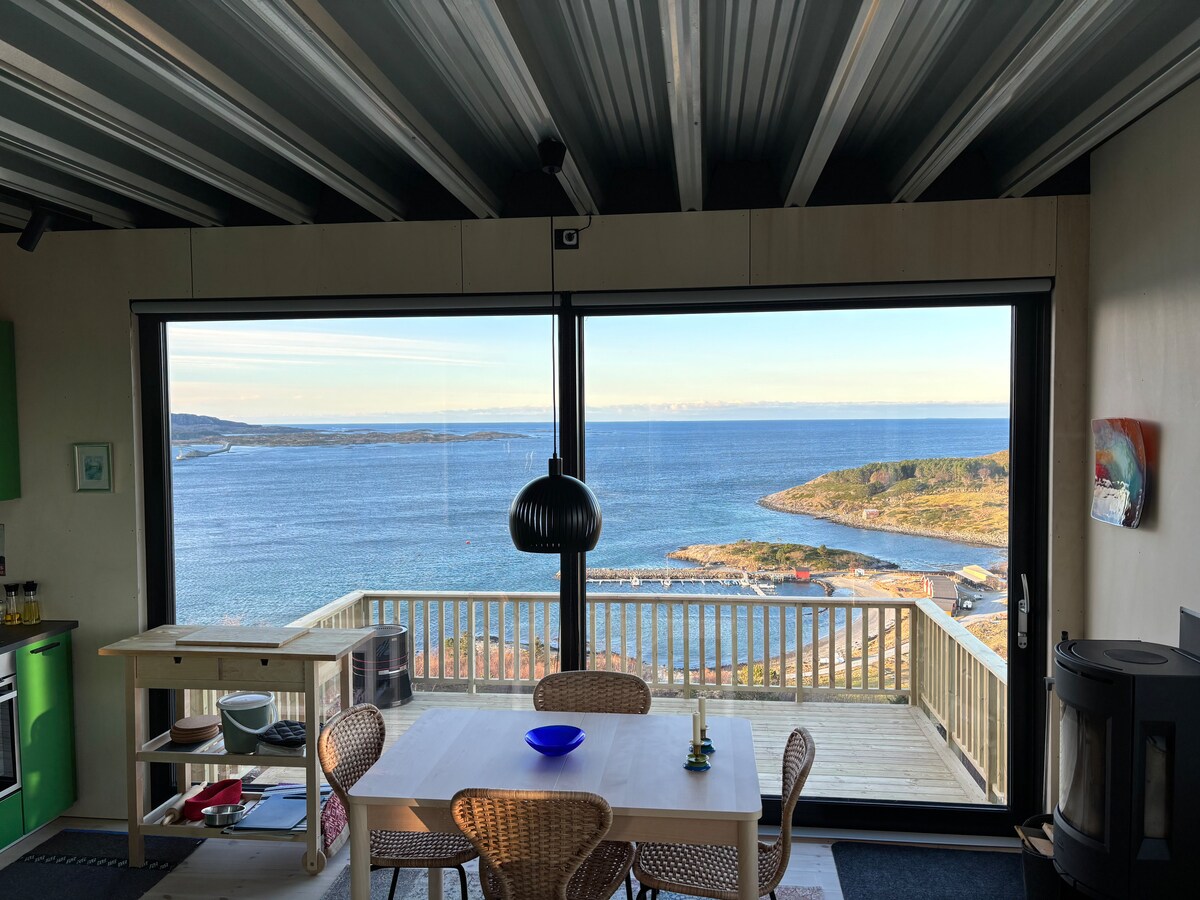 Stokkøya: cabaña moderna. Panorama. Cargador de coche eléctrico