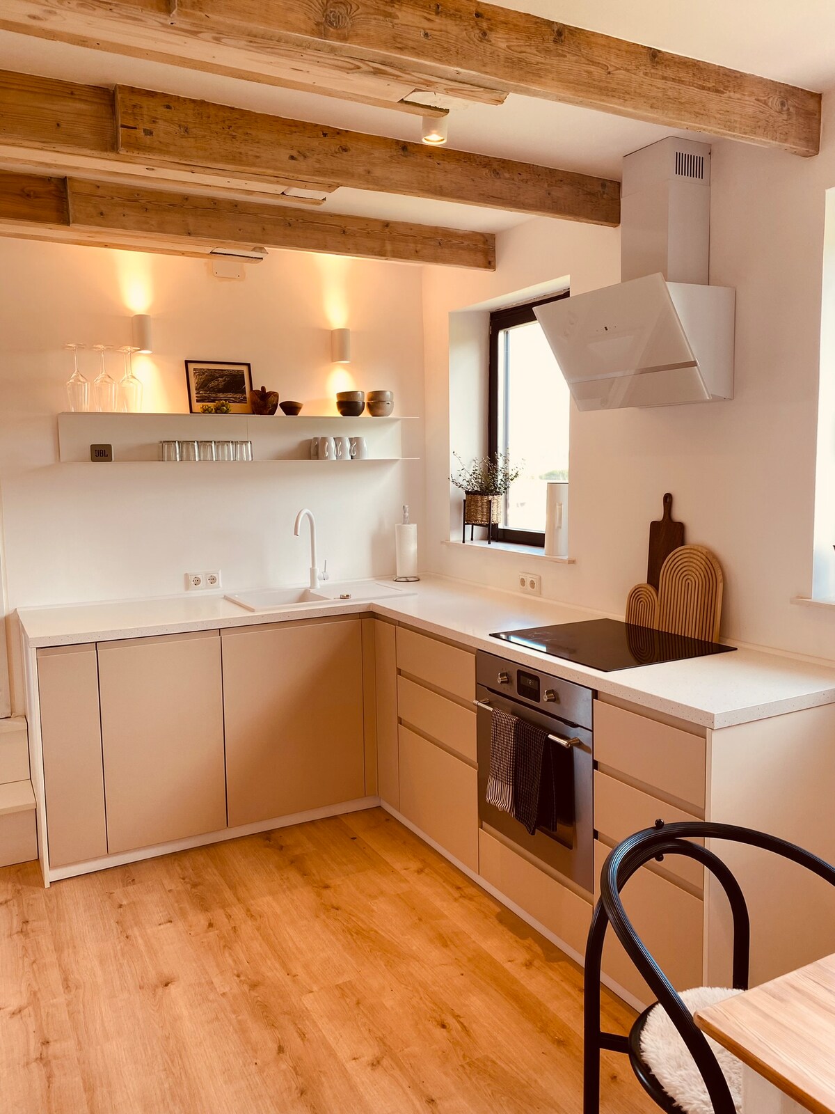 El alojamiento es una perla a las puertas de Hamburgo y se encuentra directamente en el Stör. Consta de una encantadora casa de campo con tejado de paja, que ha sido diseñada con amor hasta el más mínimo detalle. Además, la propiedad cuenta con una casa de cristal única de 400 metros cuadrados. Yoga, tenis de mesa, comida y bebida y baile... todo es posible aquí. En la pista de petanca iluminada se puede jugar con un rosado fresco hasta altas horas de la noche. Encantador.