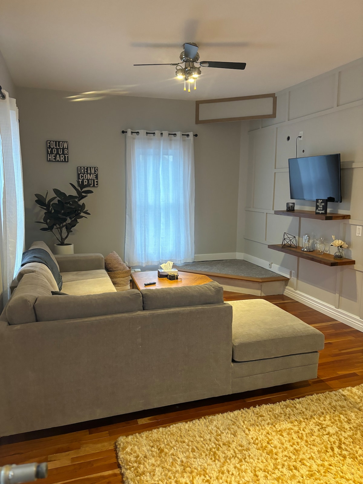 Recientemente hemos renovado nuestro sótano para crear una suite elegante, moderna, acogedora y tranquila. Hay una entrada lateral que se abre directamente a las escaleras que te llevan a la unidad. Tiene una puerta exterior metálica con cerradura para insonorización y seguridad. La unidad es un luminoso apartamento tipo estudio con tres grandes ventanales, una cocina completa, sala de estar con TV y chimenea, mesa de comedor, cama tamaño queen, vestidor y tu propio baño privado con una ducha de 5 pies. ¡Con amplia insonorización!