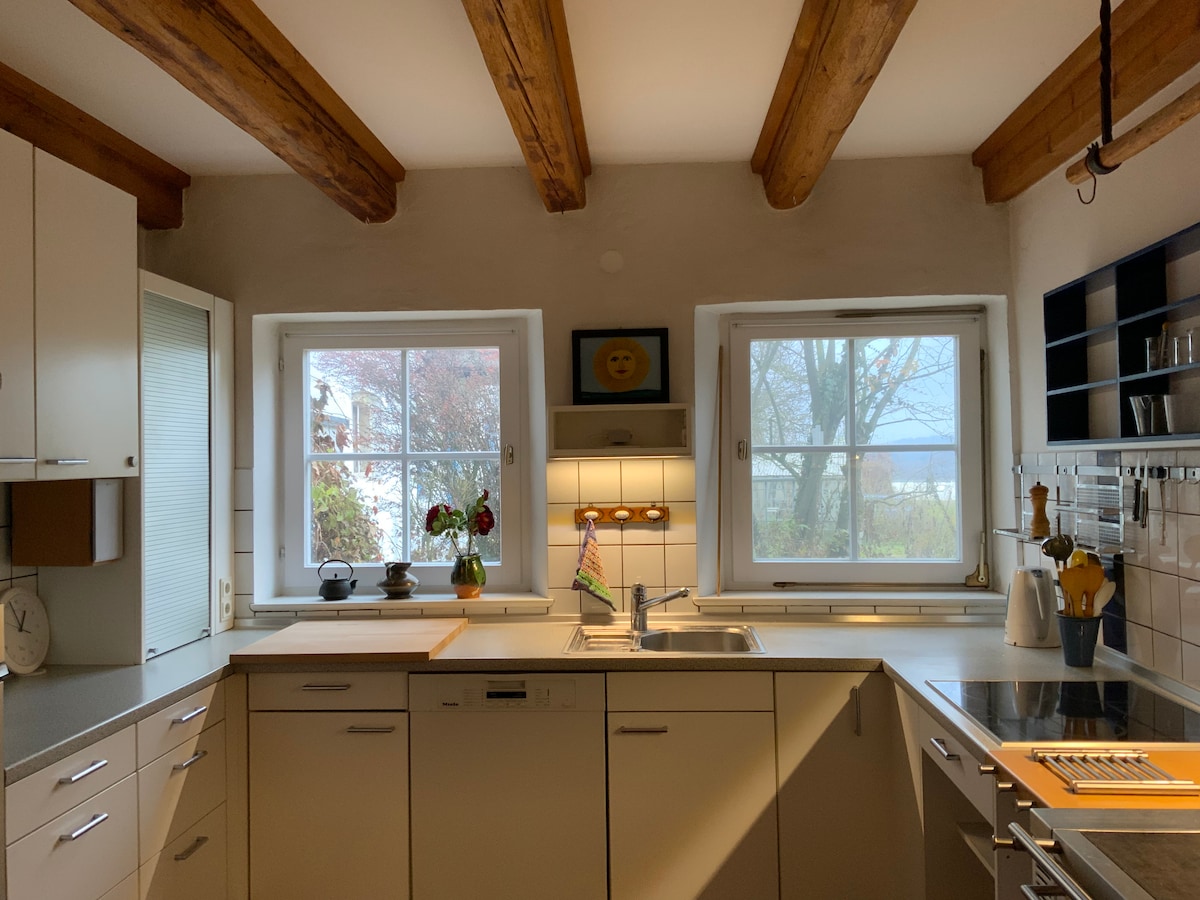 Casa de campo de una granja aislada de tres lados, enclavada en un hermoso jardín, rodeada de campos en la Baja Baviera, muy cerca de Straubing y el bosque bávaro. Un lugar para explorar activamente los alrededores, practicar senderismo, correr, esquiar o remar, visitar ciudades vecinas como Straubing, Landshut y Ratisbona, recibir invitados y cocinar juntos, descansar frente a la chimenea y en el jardín o relajarse en la sauna del hotel.