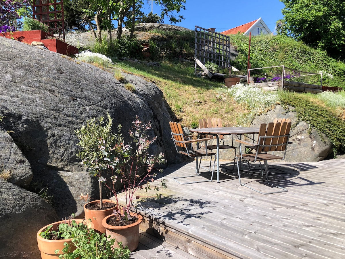 Idilio del archipiélago de 50 metros cuadrados con terraza de 40 metros cuadrados y acceso al jardín dividido en dos dormitorios, cocina, baño grande. Cerca de Gotemburgo y cerca del mar y la natación. Hay un bonito circuito alrededor de la isla y un gimnasio exterior. Hay una pequeña tienda de alimentos que está abierta las 24 horas del día utilizando BankID para entrar y comprar. Cocina totalmente equipada, ropa de cama y toallas, toallas de baño disponibles.
