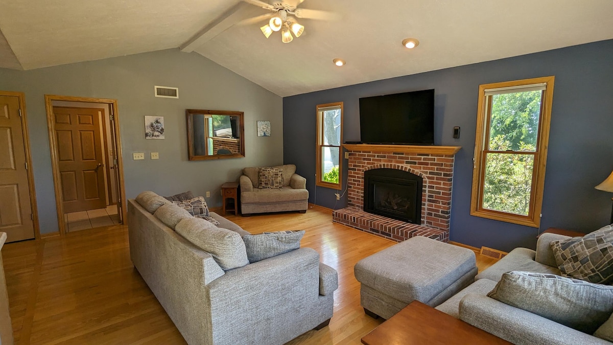 Relájate con toda la familia en este tranquilo alojamiento en el lago Beulah. Con el magnífico lago y la naturaleza circundante, te sentirás como si estuvieras a horas al norte, ¡sin el largo viaje! Despiértate y disfruta de un café en la terraza. Trae tu barco o coge un flotador y toma el sol mientras pasas el día en el agua. Relájate mientras contemplas una impresionante puesta de sol desde tu propio muelle. Disfruta de un espectáculo en el cercano Alpine Valley. Innumerables recuerdos están a la espera de ser creados. Ven a divertirte y a relajarte