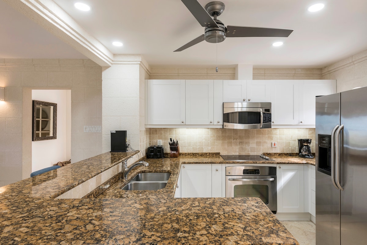 Relájate en este espacio tranquilo y elegante. Situado en el hermoso Royal Westmoreland Resort, este departamento ofrece el lugar perfecto para tus vacaciones en Barbados. 2 dormitorios con aire acondicionado: 1 tamaño king con baño privado y 1 tamaño queen. Cocina totalmente equipada, sala de estar y un maravilloso patio con comedor al aire libre. ¡El lugar perfecto para ver increíbles puestas de sol! Una gran piscina comunitaria está a solo unos minutos a pie del departamento para relajarse y tomar el sol.