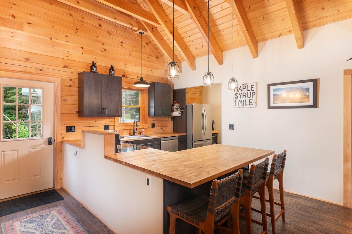 ¡Esquí de primavera! ¡Descuento de 20 %d en Sugar and Snow! Marzo es azúcar de arce y GRAN temporada de nieve en Bretton Woods (a solo 20 minutos). Lujosa cabaña en estanque privado con jacuzzi, chimenea al aire libre, mesa de fuego de gas y vino de cortesía, cocina completa, porcelana fina, ducha nueva, bañera de hidromasaje, chimeneas eléctricas y dos espacios de trabajo. 68 acres + millas de senderos a un bosque estatal cercano, esta es la base perfecta para esquiar en temporada alta y una aventura invernal serena. ¡Se admiten perros!