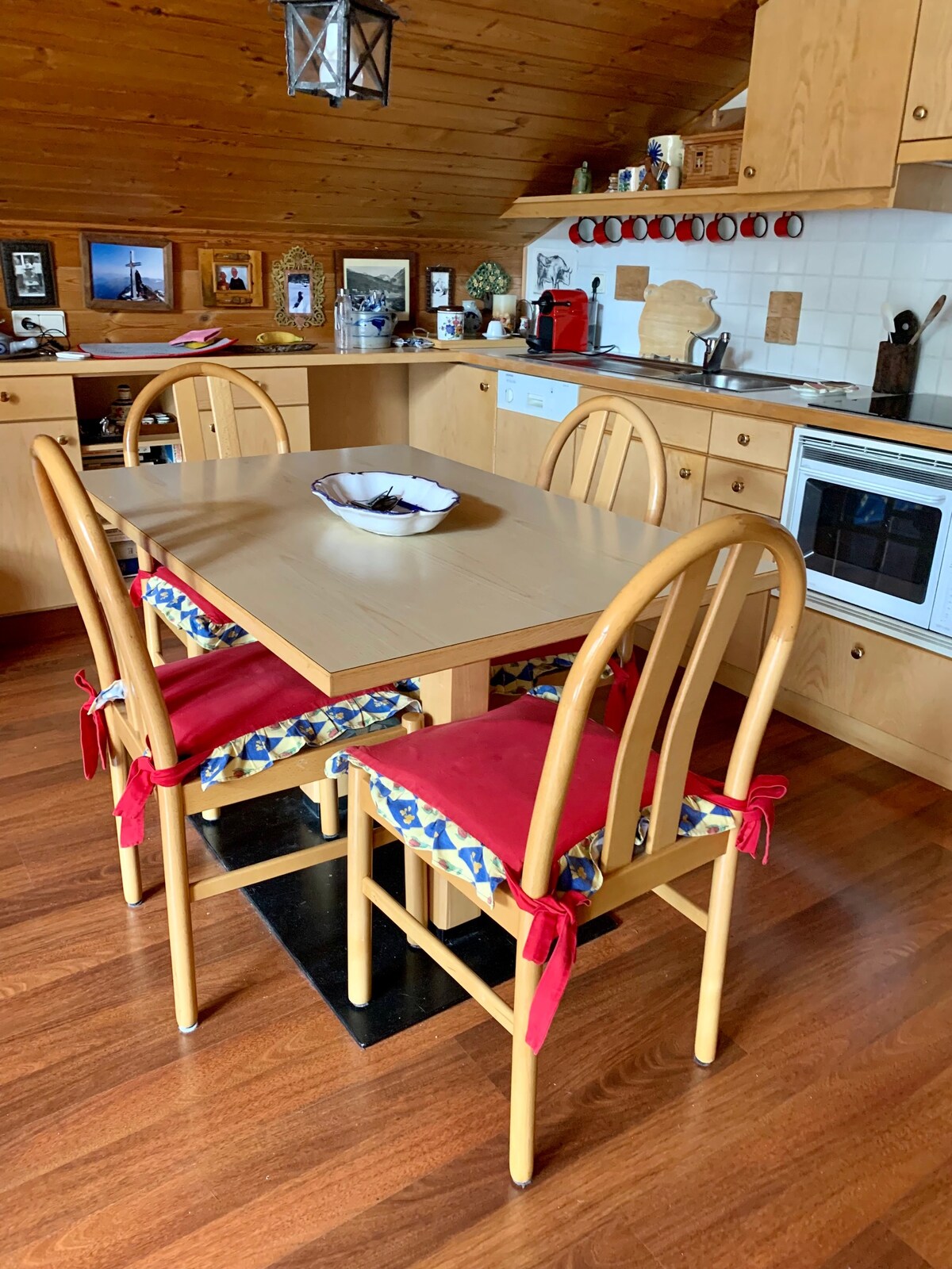 Ático muy luminoso en el cuarto piso de un pequeño condominio, con magníficas vistas a los Ortles. Habitación doble, baño (bañera), sala de estar con cocina americana. Todo parquet, muy limpio y perfectamente ordenado. Habitación en planta baja donde puedes dejar esquís y botas. No hay ascensor, pero también puedes acceder desde la puerta trasera que va directamente a la segunda planta. Las escaleras son cómodas y cortas. No se admiten mascotas de ningún tipo y no se permite fumar dentro de la casa.