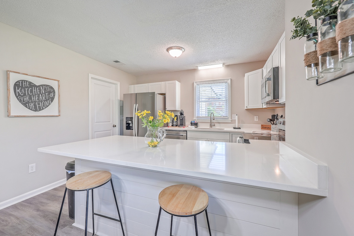 ¡El retiro costero más TRANQUILO de todo North Charleston! ¡Bienvenido a nuestra lujosa ESCAPADA de 4 dormitorios y 2,5 baños enclavada en el corazón de Park Circle! Descubriste el destino número1 para la relajación en el Lowcountry. ¡A poco menos de 15 minutos del centro! Comodidades clave: • Sala de juegos con mesa de billar. • Terraza privada con fogata • Colchón tamaño king de espuma viscoelástica de lujo • Sistema de sonido Bose • Garaje independiente para estacionamiento. • A 5 minutos del aeropuerto. • A menos de 25 minutos de Folly Beach. • A menos de 20 minutos de Isle of Palms.