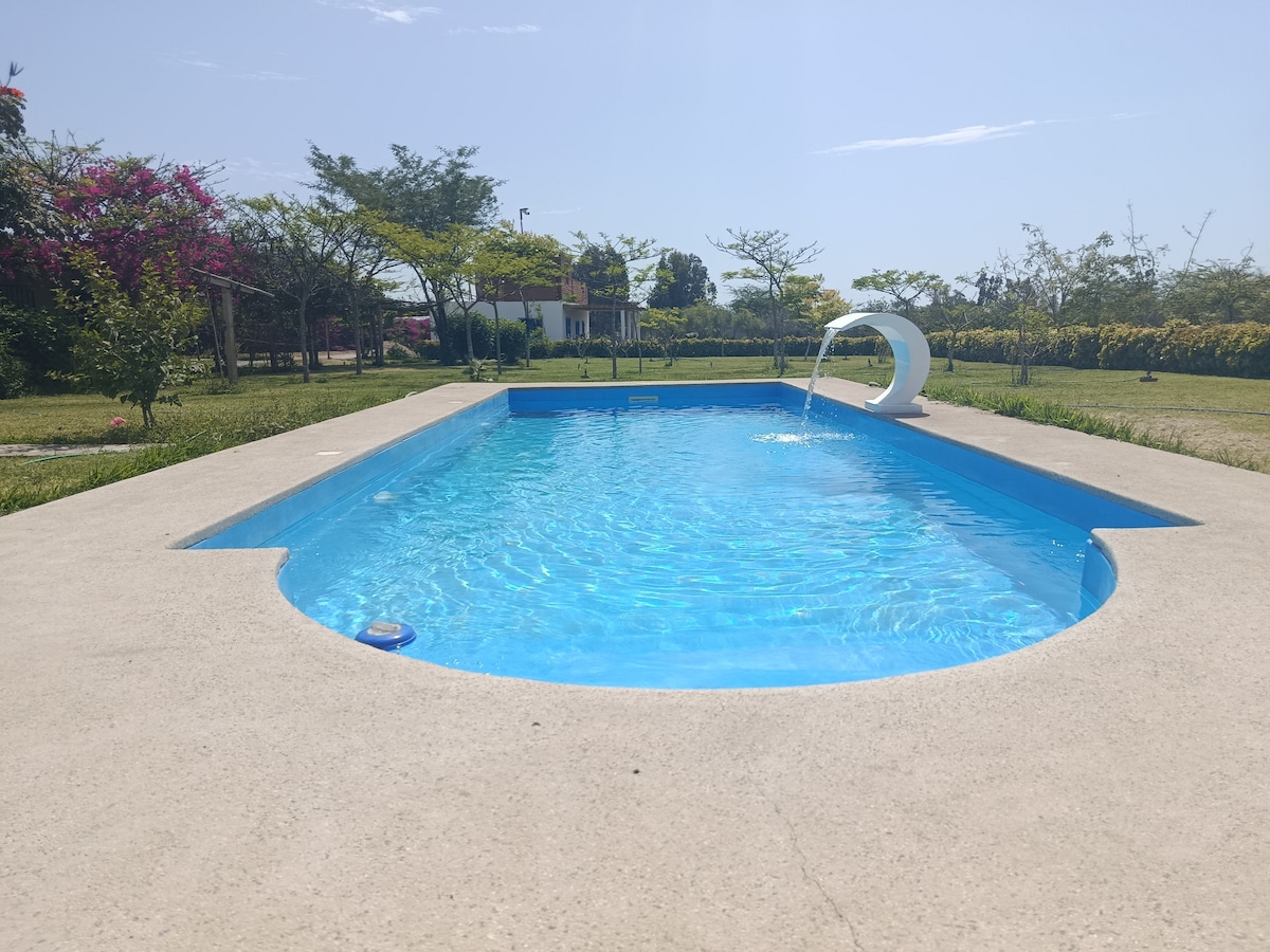 Casa de Campo y Playa, perfecta para quienes buscan días soleados rodeados de naturaleza junto a familia y amigos. Disfruta de su piscina tipo Oasis, Kamado, hamaca y fogata. Brindamos ropa de cama y toallas además de una persona encargada de la limpieza todos los días. Aceptamos mascotas. Tenemos descuentos especiales para estadías de más de 2 noches.