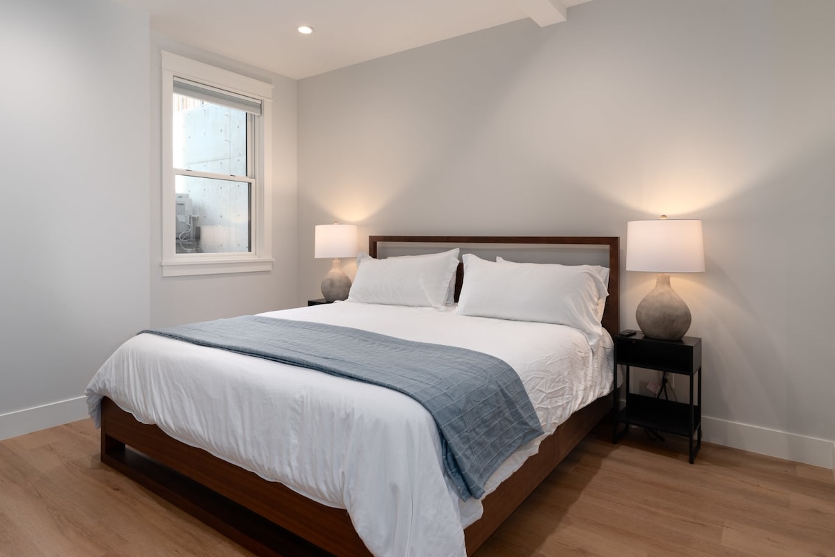 ¡Luminoso nuevo 1BR, cama king, sin tareas de salida!