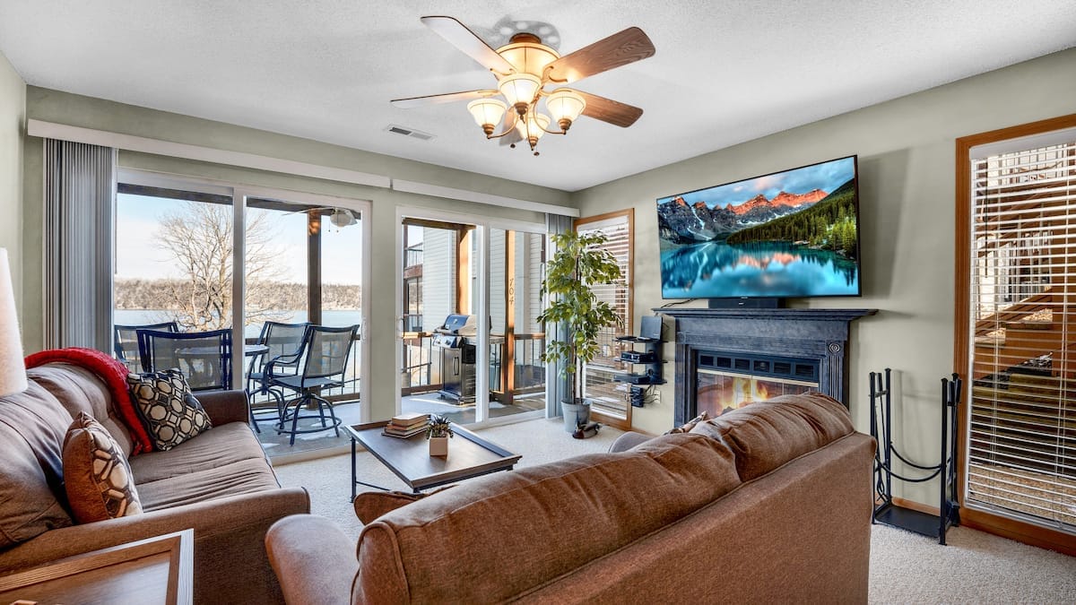 Enjoy a peaceful and stylish stay at this unique lakefront condo in Osage Beach! Located just minutes from shopping, entertainment, and recreation venues, this 2-bed, 1-bath vacation rental provides a serene escape from the concrete jungle. Spend your days boating, fishing, jet-skiing, and more on the Lake of the Ozarks, then return home to relax on the deck. Make your next vacation one to remember at this central location!
