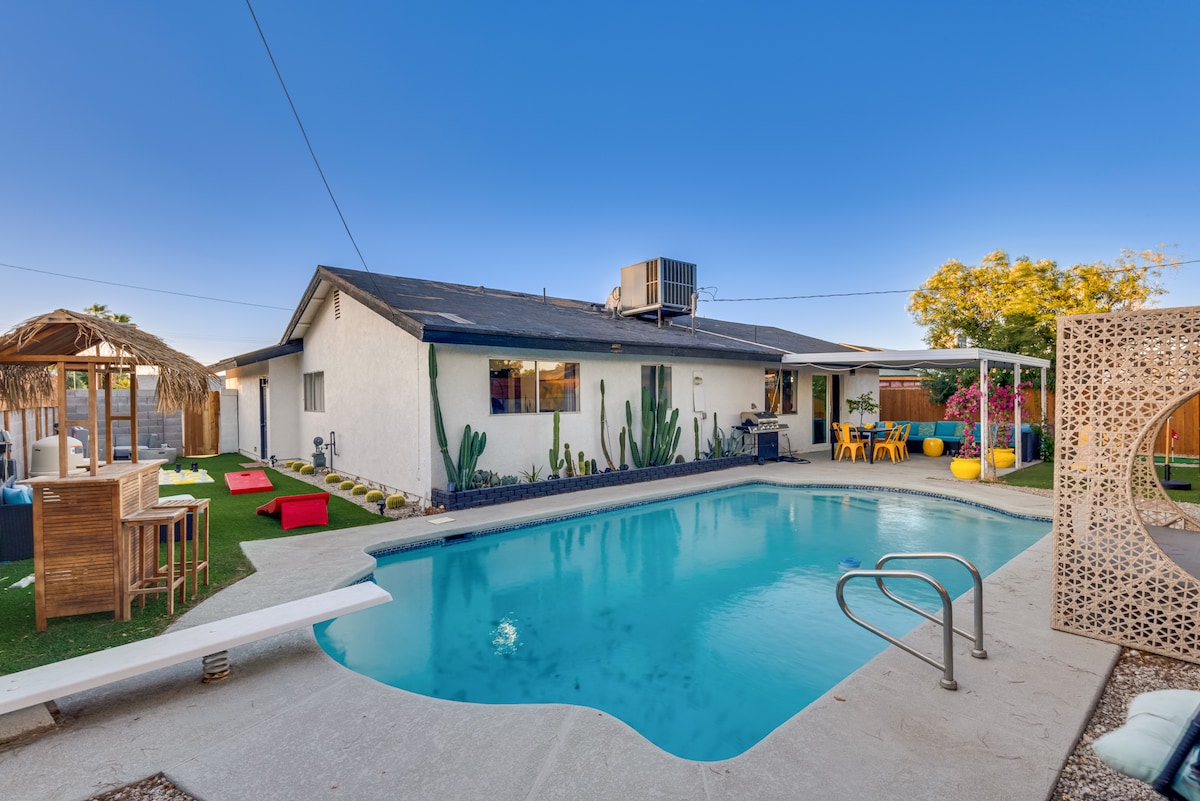 ¡RARO en el mercado! Esta casa absolutamente impresionante, totalmente remodelada y con licencia Artsy con PISCINA, CENTRO DE NEGOCIOS, COCINA DE CHEF está en el corazón del centro histórico, a solo 5 minutos en auto de Las Vegas Strip, a 10 minutos del Centro de Convenciones y a 3 minutos de Fremont Experience. Ubicado en un barrio tranquilo, este exquisito refugio es ideal para los huéspedes que buscan lujo, comodidad y diversión en un solo lugar. Diseñado cuidadosamente y bellamente equipado, este alojamiento satisface todas tus necesidades familiares, de negocios y de ocio.