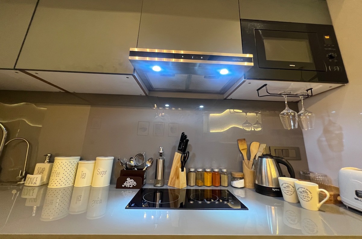 Un espacio de lujo en una zona tranquila, verde y elegante sin multitudes y un favorito con expatriados. Perfecto para una escapada/viaje de trabajo. Aeropuerto Internacional: 10 minutos A pocos pasos de nuestra entrada te llevará a un amplio salón con lujosos asientos y bar estilo pub con una cocina y un tocador. Cocina equipada con vitrocerámica+micro+horno+ hervidor eléctrico +Nespresso+Nutribullet. El dormitorio tiene una cama tamaño king, TV de 42 pulgadas ybaño privado. El estudio/oficina es perfecto para las necesidades laborales. Encontrarás una cama de un solo día en el área de estar que se utiliza para el tercer huésped .
