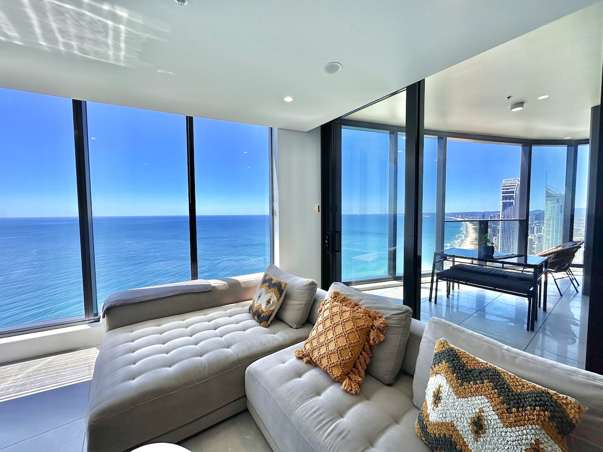 Apartamento frente a la playa ubicado en un piso alto con ventanas del piso al techo, balcón privado con vistas al mar y acceso a la playa Surfers Paradise justo al otro lado de la carretera. El apartamento cuenta con una cama tamaño king en el dormitorio y un sofá cama doble plegable en el salón. Cocina totalmente equipada, wifi de alta velocidad, aire acondicionado, televisores con Netflix y YouTube, estacionamiento gratuito y lavandería privada completa. Los huéspedes tienen acceso al gimnasio, el spa, la sauna, la piscina y las barbacoas cerca de la piscina y en la terraza de la azotea.