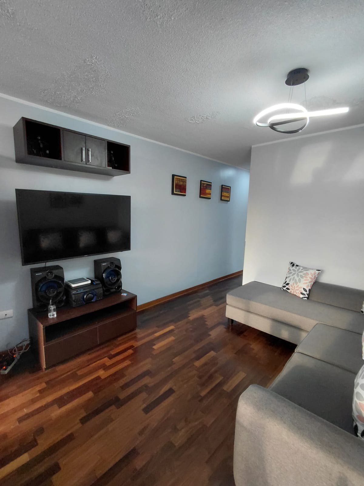 Moderno y amplio apartment para relajarse y con fácil acceso a los lugares turísticos. Ideal para recibir a turistas. La habitación tiene una cama queen,baño y TV smart con la aplicación Netflix, a la cual el huésped puede ingresar con su cuenta. Desde la terraza podrás apreciar el sunset. La cocina está bien equipada. La Sala tiene Tv smart. Cochera gratuita que el huésped puede solicitar durante su estancia. Ubicado cerca a la playa, a un súper market y la estación del metro.