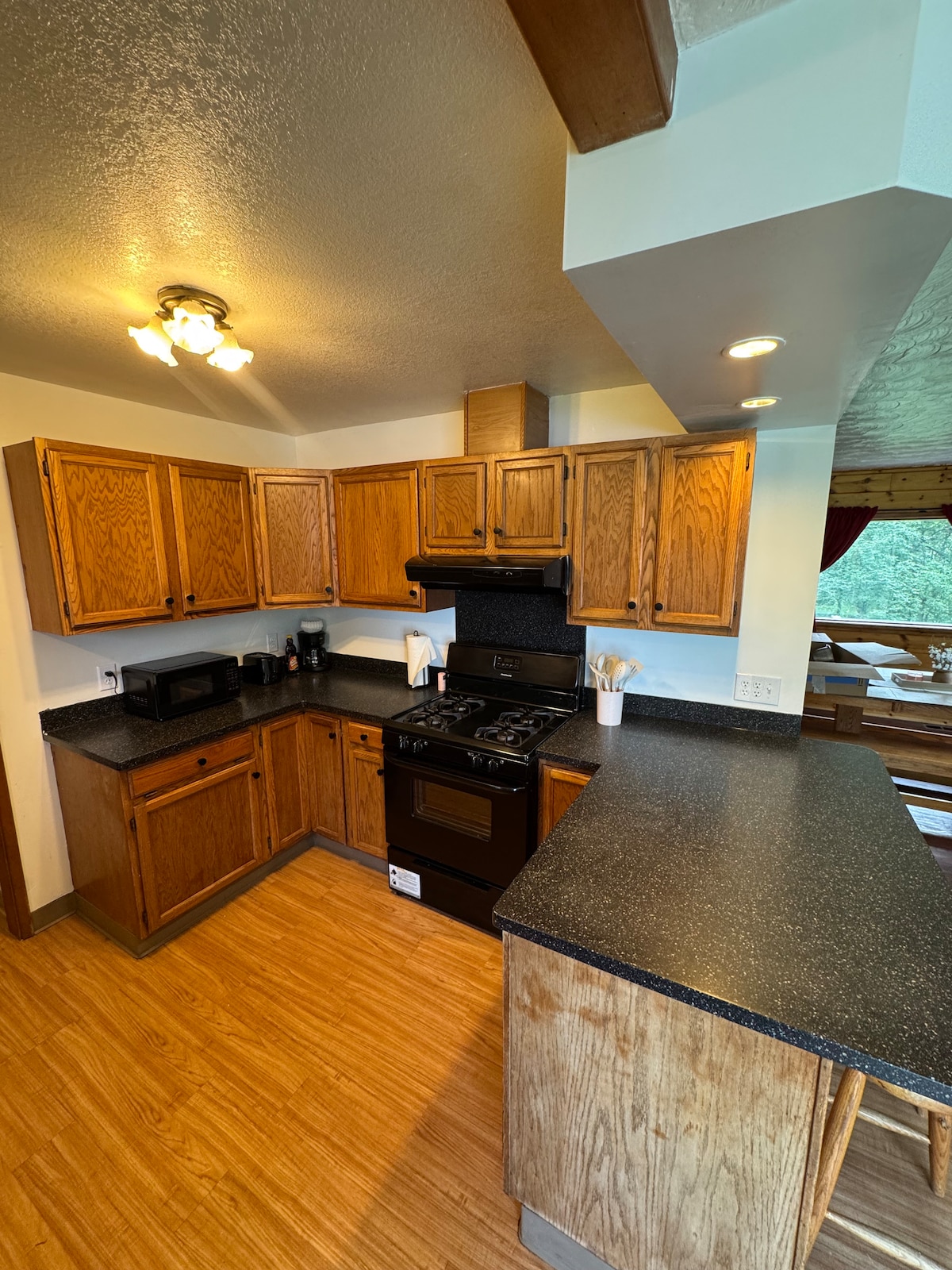La cabaña del gran lago: cama tamaño queen, cocina y vistas