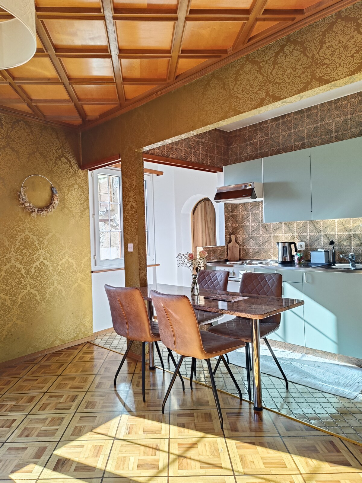 Ubicado sobre el bosque y el río, nuestro luminoso y acogedor chalet se encuentra en una zona tranquila y a pocos pasos de la naturaleza,el río,al comienzo de las rutas de senderismo y a 3 minutos del servicio de transporte(funciona en invierno) Loft ideal para relajarse y descansar junto al fuego de la chimenea o en el jacuzzi. Perfecto para parejas. Para más de 2 personas bajo petición. Dispone de un dormitorio (2 personas) y 1 espacio abierto bajo el altillo con TV y cómodo sofá cama.