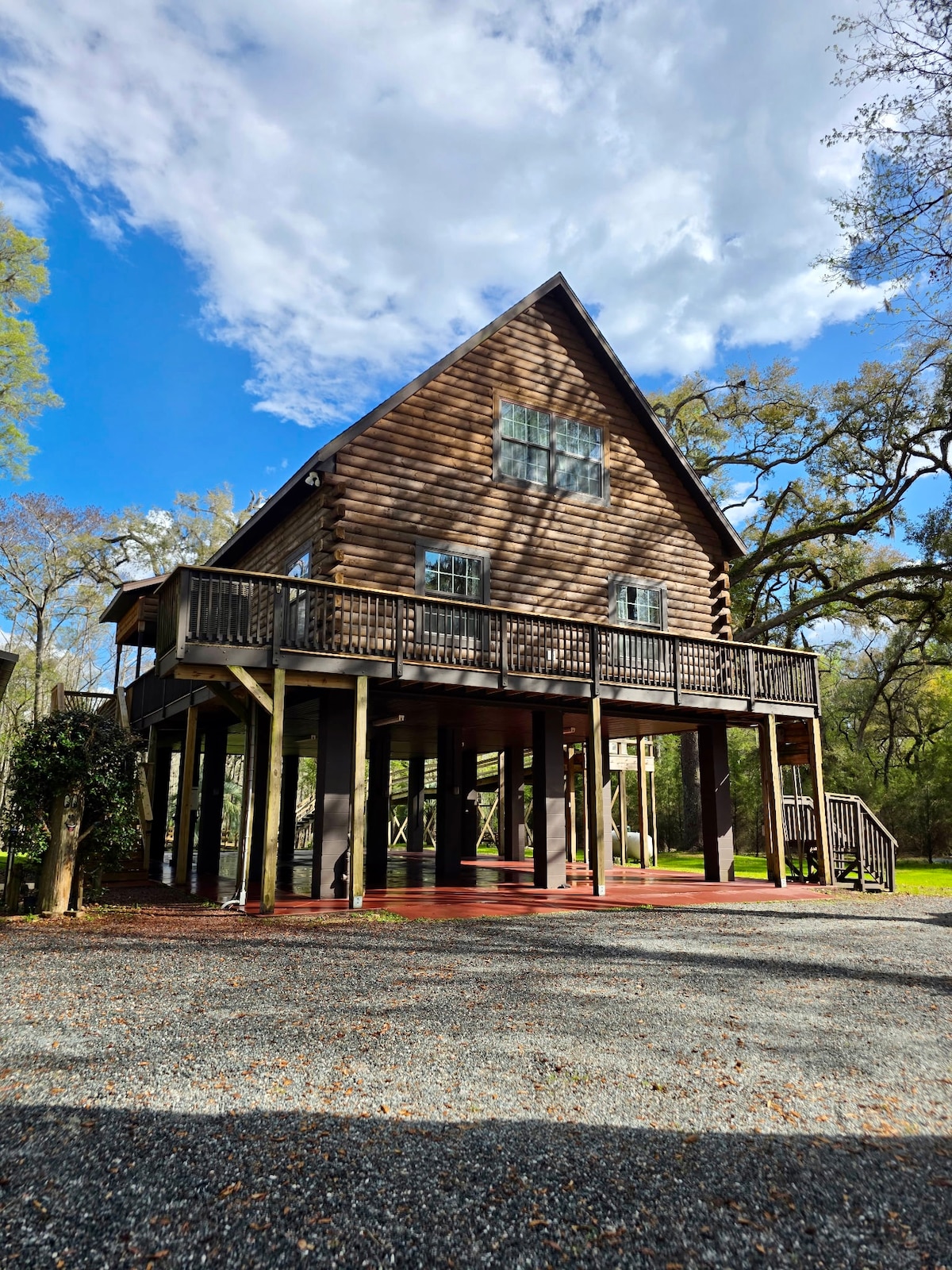 Ubicada en el corazón de la Florida rural del norte, esta pintoresca cabaña de troncos de 3 acres ofrece un refugio tranquilo envuelto por majestuosos robles y altos pinos. Al entrar, se encuentran abrazados por la calidez de un interior acogedor, donde los cómodos muebles invitan a la relajación. Sin embargo, el verdadero encanto se encuentra en una amplia terraza al aire libre que invita a los huéspedes a relajarse en medio de la serenidad de la naturaleza mientras disfrutan de su bebida matutina de la amplia selección de café, té y chocolate caliente.