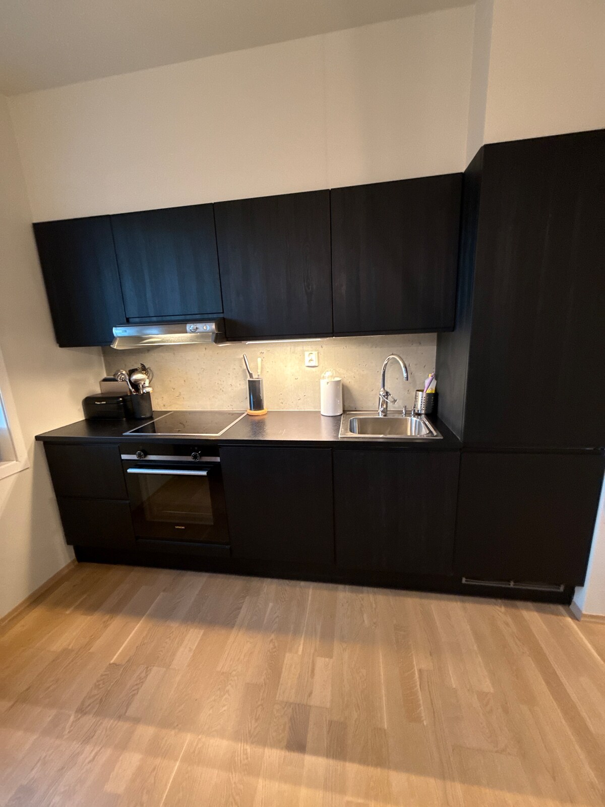 Departamento nuevo de 55 m2 con dos dormitorios. Ventilación equilibrada. Termostato en todas las habitaciones. Amplias camas dobles (180 cm de ancho) en ambas habitaciones. El sofá cama con un ancho de 140 cm se puede elevar hasta una o dos personas además. Vista al mar y salida al jardín. Barrio tranquilo y apacible con parque infantil y zonas para caminar cerca. A pocos pasos de la parada de la tienda y el autobús. Se tarda unos 20 minutos en autobús al centro de la ciudad.