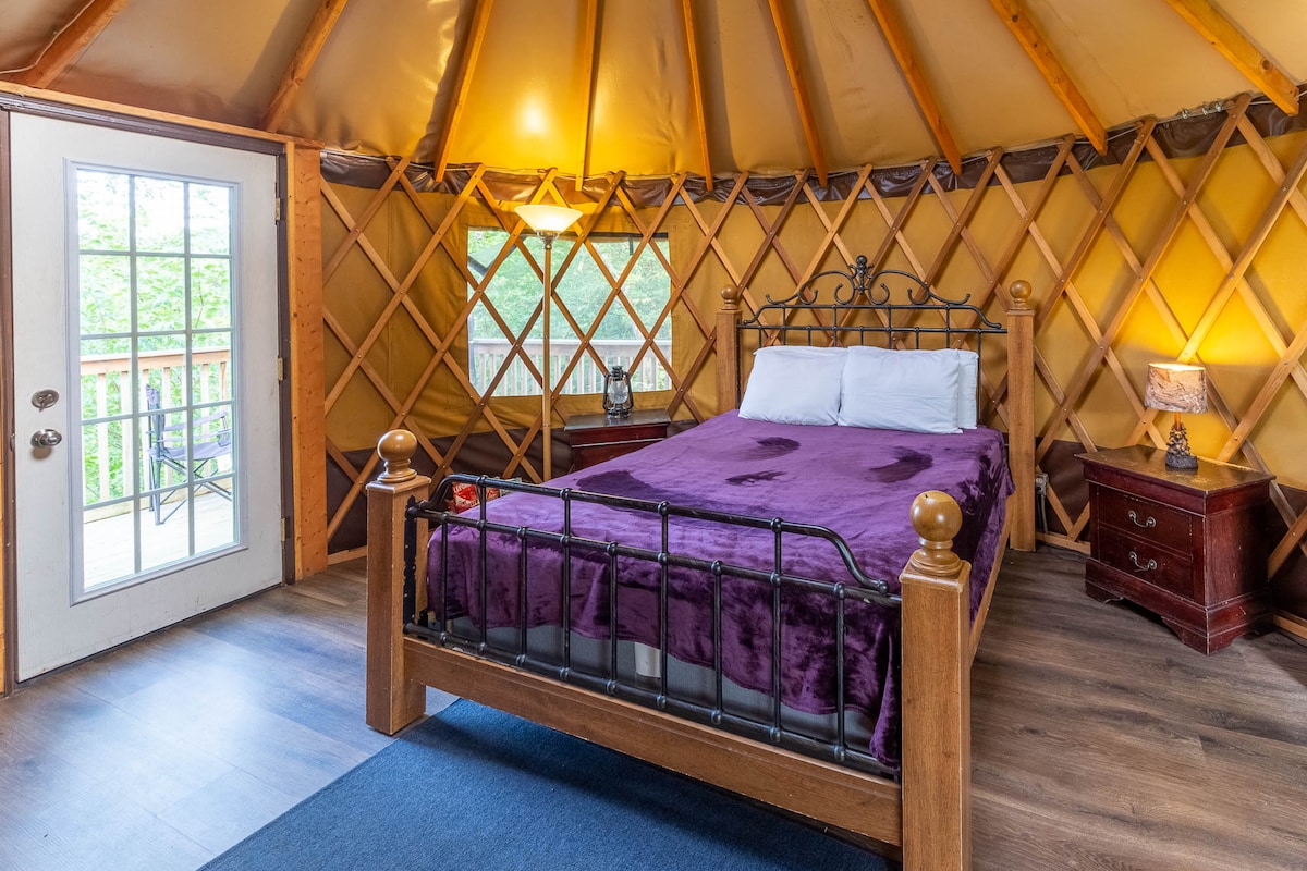Yurta glamping limpia y acogedora en un refugio en la cima de la montaña. Incluye el uso privado de un edificio adicional a veinte pies de distancia que tiene un baño completo y puede ser una sala de juegos o un área adicional para dormir. Las camas tienen sábanas de primera categoría, la cafetería está abastecida y el wifi es rápido y confiable. Los huéspedes disfrutan de acceso ilimitado a cinco acres de senderos, vistas panorámicas y vida silvestre. Incluso hay un sendero hasta el río Little Tennessee; mucho que explorar en el lugar o en las cercanas Nantahala Outdoor Center y Bryson City.