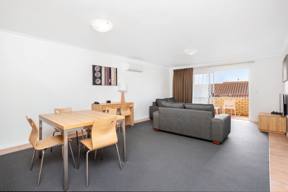 Modern 1-bedroom apartment in the heart of Perth, ideal for business travellers, couples, and longer stays. Prime central location just 5–7 minutes’ walk to Perth Train Station and around 10 minutes to the Busport, with shopping and dining close by. Fully equipped for comfortable stays, featuring air conditioning, Wi-Fi, a full kitchen, and washer and dryer. Private 10 sqm balcony with city skyline views, perfect for relaxing. Guests enjoy access to a rooftop pool and fully equipped gym.