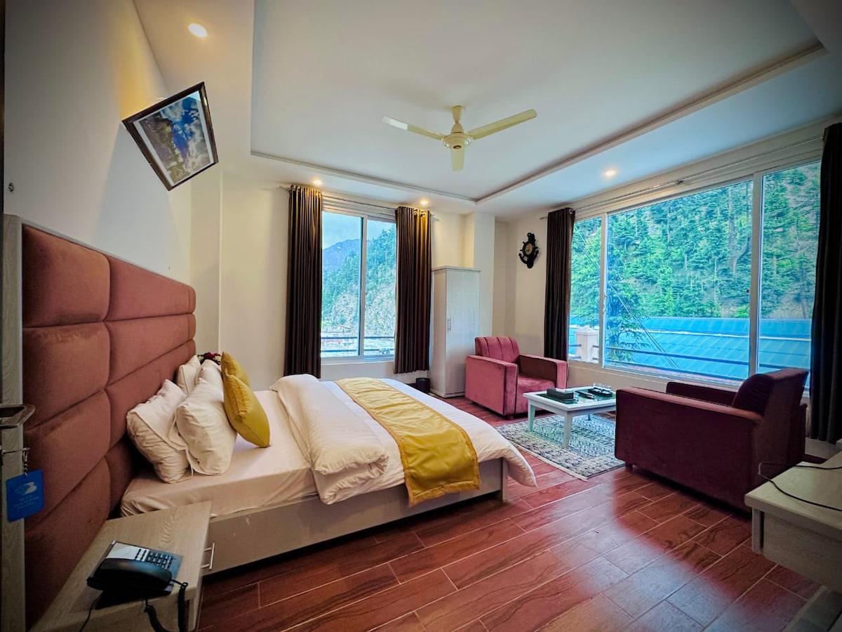Crea recuerdos en este lugar único y familiar. La villa tiene una pista de montaña con increíbles vistas del valle de Swat. Cada habitación tiene un balcón y un baño adjunto. La villa tiene un poco de toque tradicional con grandes terrazas. Mientras estés en la villa, también tendrás acceso al área del centro vacacional y se te asignará un personal dedicado para que te ayude. También tenemos instalaciones de hoguera, noche musical y barbacoa en vivo.