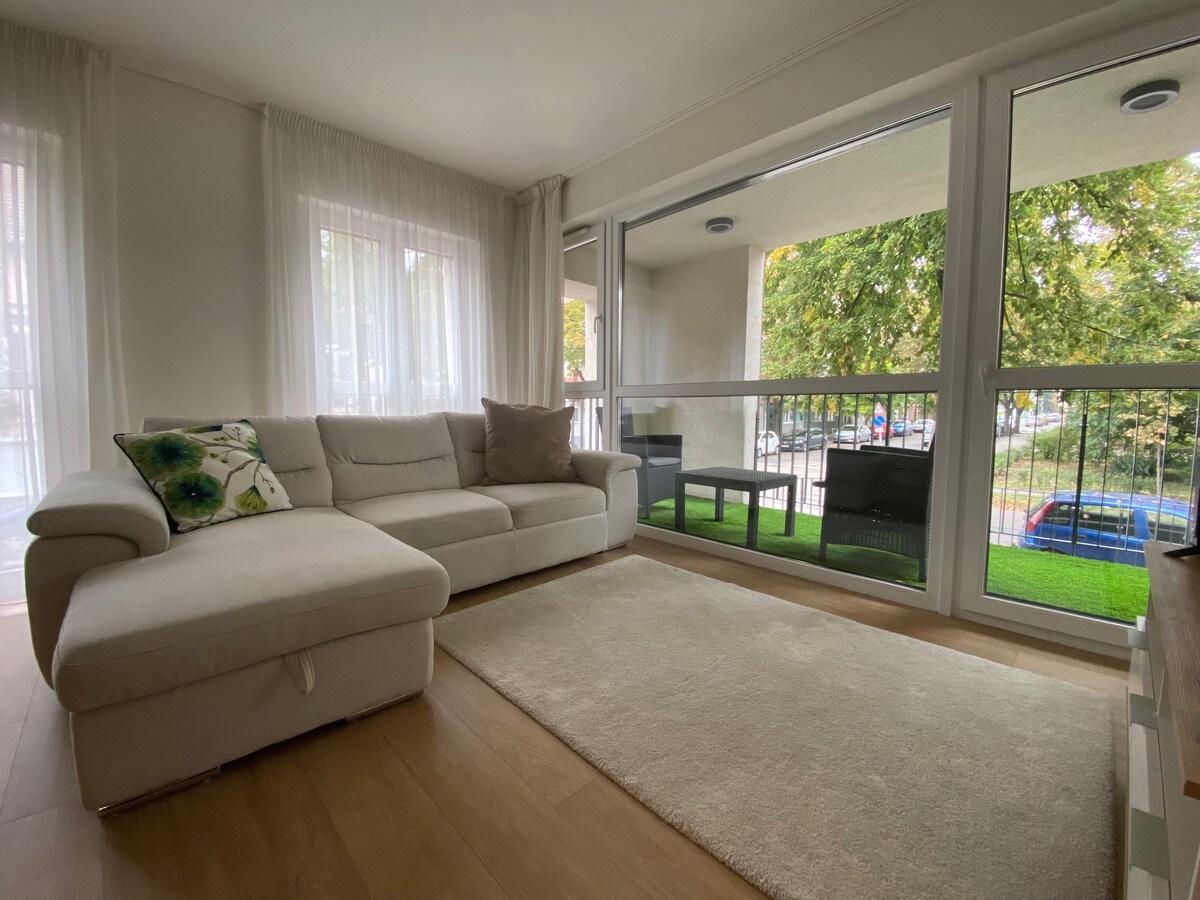 Apartamento recién construido, espacioso, en la planta baja cerca del centro de la ciudad, en una calle tranquila. 1 dormitorio, sala de estar, cocina abierta. Estacionamiento gratuito. Está a 15 minutos a pie de la plaza Dóm y de las clínicas. Las paradas de tranvía y autobús están en la siguiente calle. El departamento tiene 50 metros cuadrados, totalmente equipado: aire acondicionado de refrigeración y calefacción, calefacción por suelo radiante, lavavajillas, lavadora, terraza acogedora. Wifi gratuito, servicio de TV. Un máximo de 4 personas pueden alojarse en el departamento.